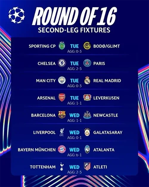 Потенциальные пары 1/4 финала уже вызывают бурные обсуждения среди экспертов и болельщиков. Победитель пары ПСЖ/«Челси» встретится с сильнейшим в противостоянии «Галатасарай»/«Ливерпуль». «Реал Мадрид»/«Манчестер Сити» сойдется с «Аталантой»/«Баварией». «Ньюкасл»/«Барселона» сыграет с «Атлетико»/«Тоттенхэмом», а «Буде-Глимт»/«Спортинг» померится силами с «Байером»/«Арсеналом». Каждый из этих матчей обещает стать настоящим футбольным спектаклем, где каждая ошибка может стоить слишком дорого. Нас ждет незабываемая неделя европейского футбола, которая определит восьмерку сильнейших команд континента.